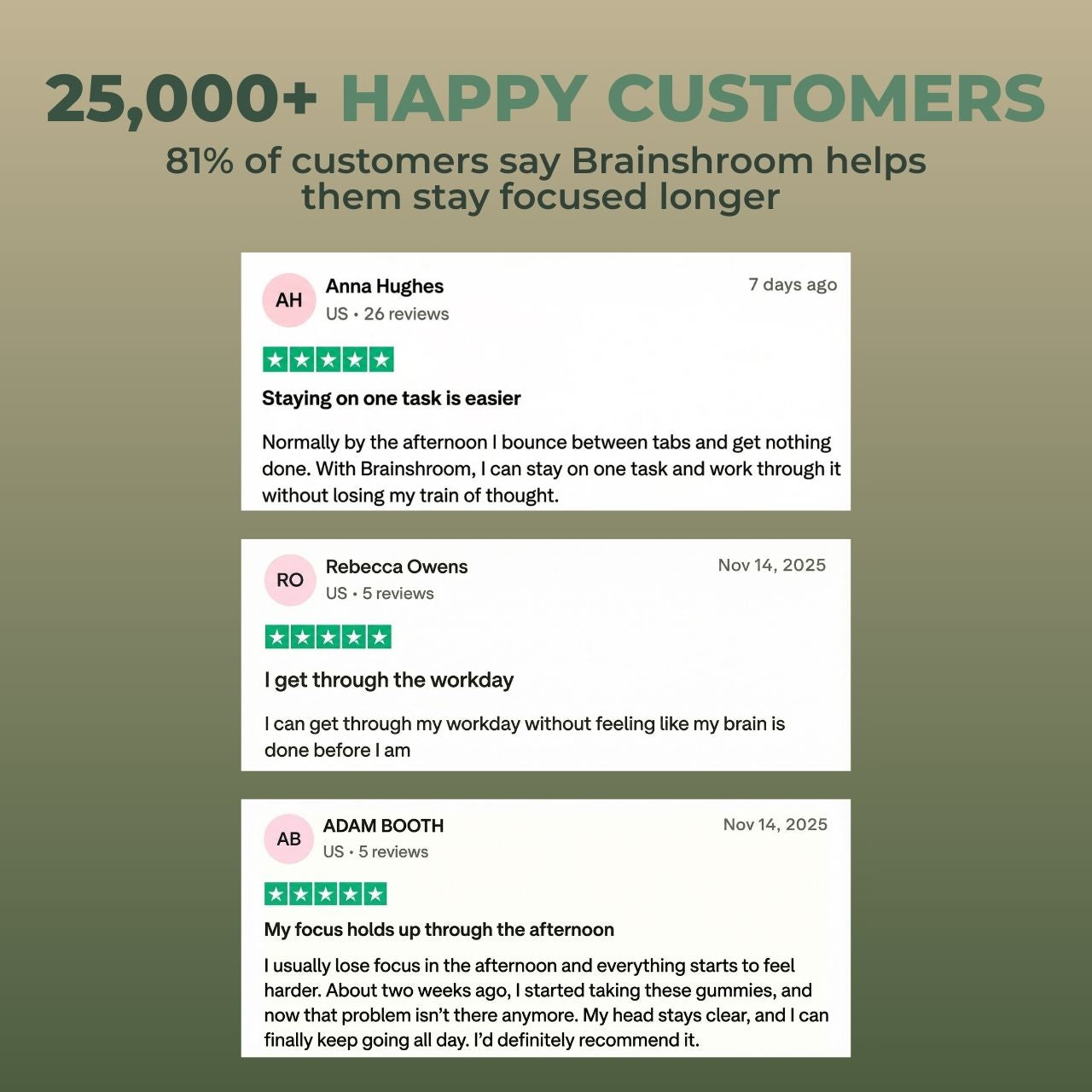 ★★★★★ ''I used to feel tired and lose focus every afternoon. After taking these gummies for about a week, my mind feels clearer and I can stay on task longer.''